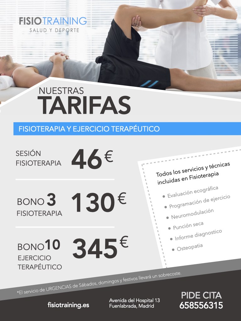 En Fisiotraining sabemos que los tratamientos y las terapias son multi-disciplinares y es muy común que un paciente necesite varios de nuestros servicios para recuperarse de una lesión o alcanzar un objetivo deportivo combinando sesiones de entrenamiento personal, rehabilitación y fisioterapia. Por ello en tus citas podrás disfrutar en la misma sesión de cualquiera de nuestros servicios según tus necesidades. Te guiamos, bajo la primera sesión de diagnóstico, sobre qué servicios y técnicas necesitas acorde a tus objetivos.